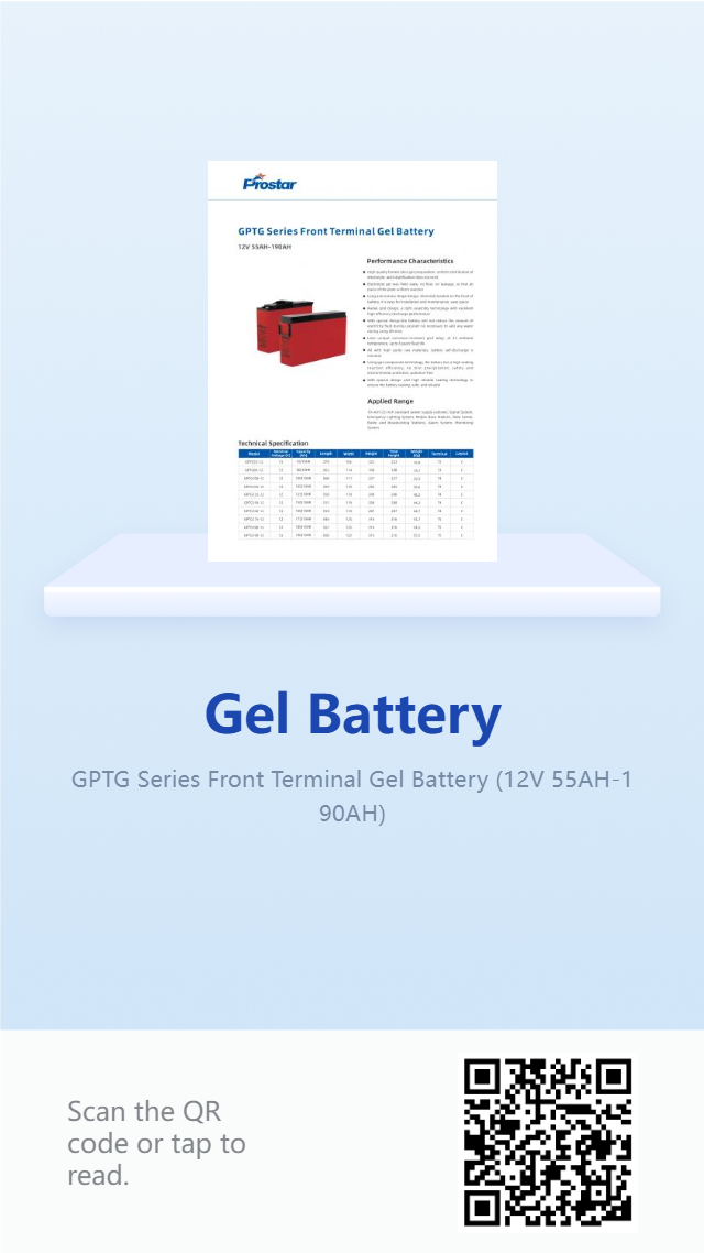 La Batería de Gel de Terminal Frontal Serie GPTG de Prostar está diseñada especialmente para aplicaciones que requieren un equilibrio entre rendimiento y eficiencia de espacio, con capacidades que van desde 12V 55 AH hasta 190 AH. Esta línea de baterías está pensada para satisfacer las necesidades específicas de sistemas de gabinetes de alimentación de 19 y 23 pulgadas, presentando una forma delgada y alargada que, junto con terminales ubicados en la parte frontal, simplifica la instalación y el mantenimiento al mismo tiempo que conserva espacio. El uso de gel de sílice pirógena de alta calidad asegura una distribución uniforme del electrolito, lo que, combinado con el estado fijo del gel electrolítico, evita fugas y mantiene una reacción uniforme en toda la superficie de las placas. Este diseño contribuye a la alta eficiencia de sellado de la batería y a su condición de opción segura y respetuosa con el medio ambiente, libre de contaminación.